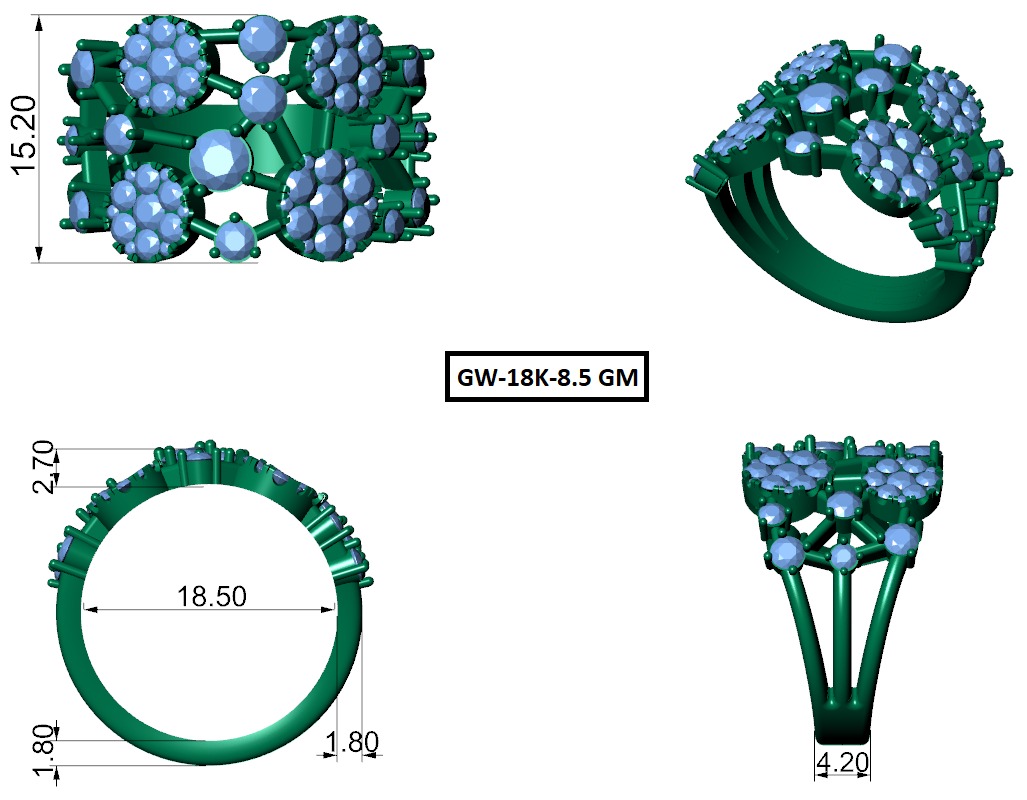 CAD design is transferred on 3D Rapid Prototype system which works on the principle of Direct Light Projection Technology. The resin model is created using 3D RPT system. Resin model is then converted into silver model using casting process. The silver model is a master design and it is used to create the rubber Mould from which all subsequent pieces are made.